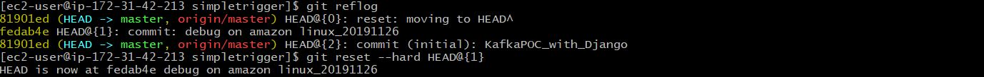 다행히 내가 날려먹은 커밋 기록인 "debug on amazon linux_20191126"이 존재하였고,