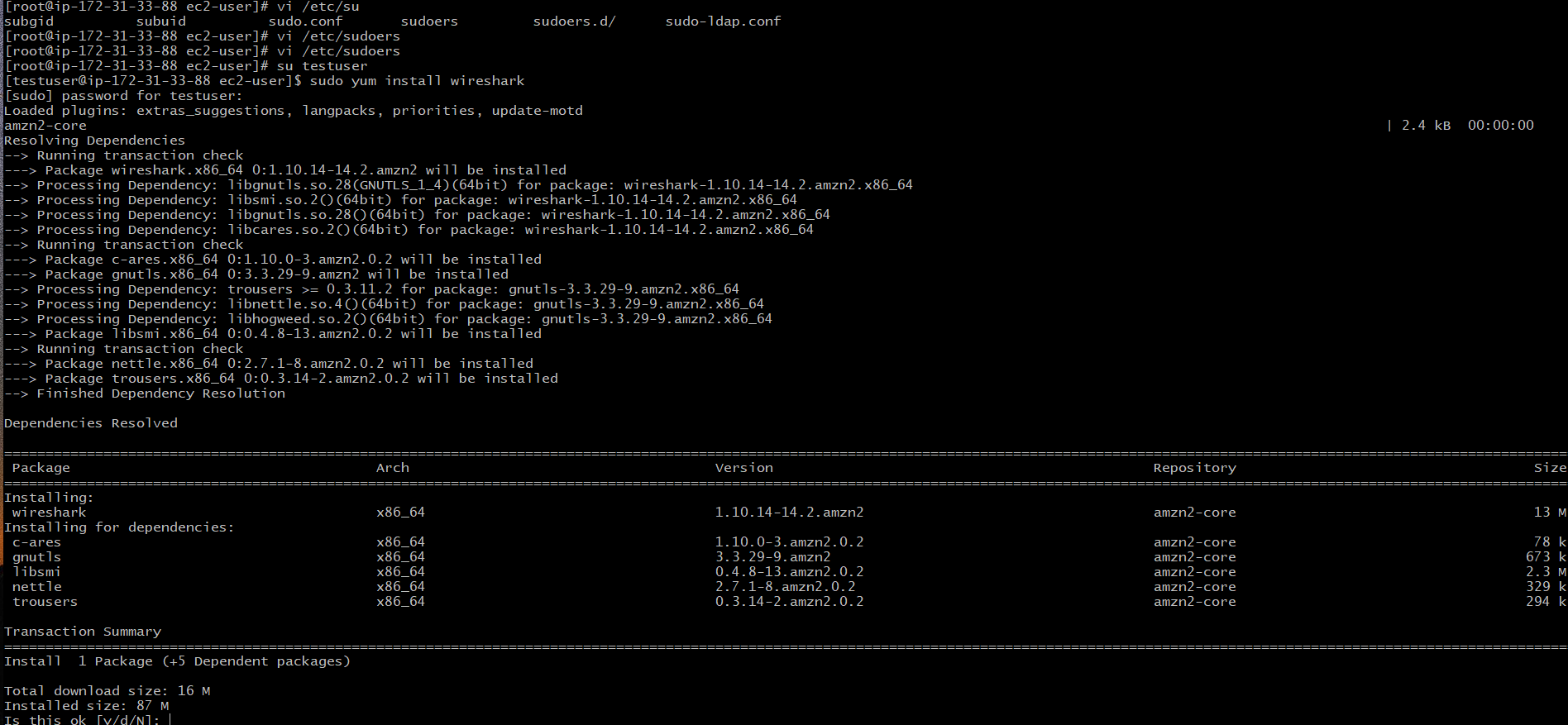 위와 같이 권한을 testuser에게 준 결과, 다음과 같이 sudo 권한을 준 명령어가 잘 작동함을 볼 수 있었다.