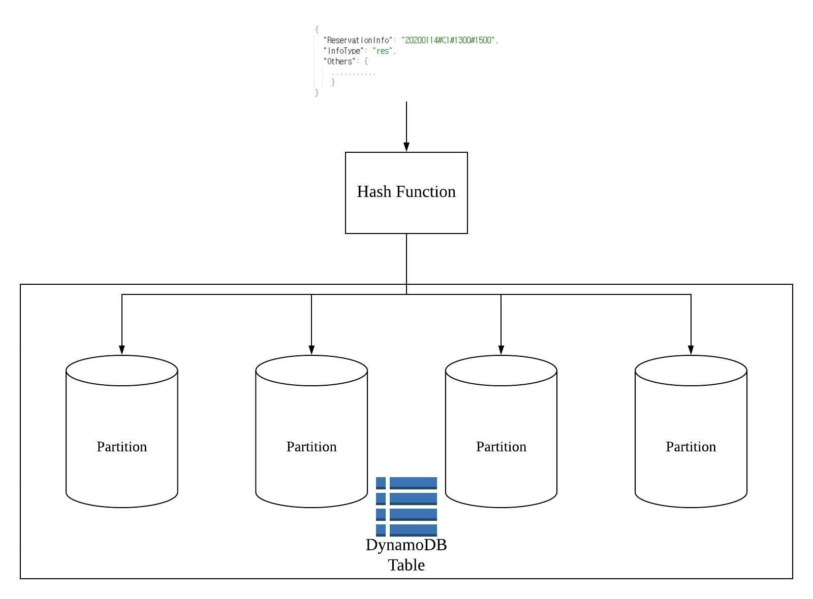 - DynamoDB는 자체 내부 Hash Function이 있다.