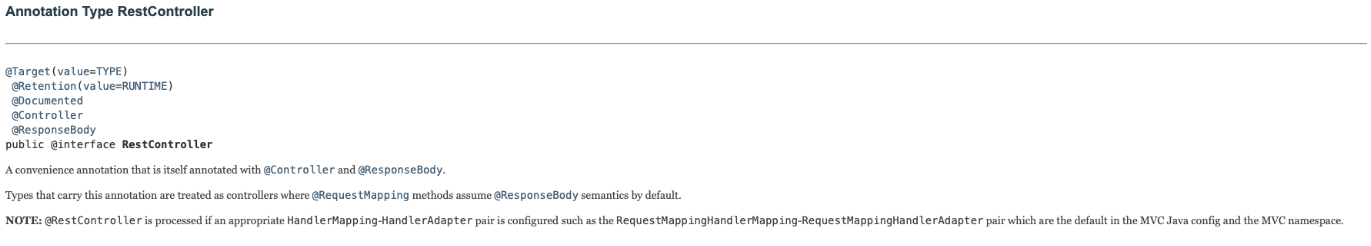 - https://docs.spring.io/spring/docs/current/javadoc-api/org/springframework/web/bind/annotation/RestController.html