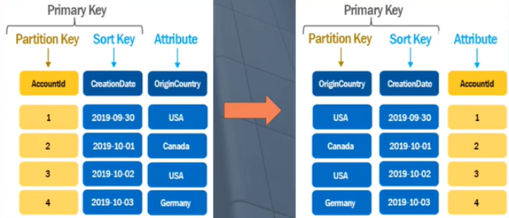 그러나 GSI를 사용하게 되면 다음과 같이 Primary Key를 원하는대로 바꿔서 테이블을 새로 생성 할 수 있다.