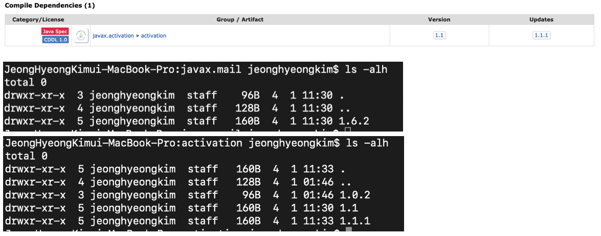 javax.mail의 의존성을 조사해본 결과 다음과 같았고, 이 의존성에 대한 용량을 파악해보기로 하였다.