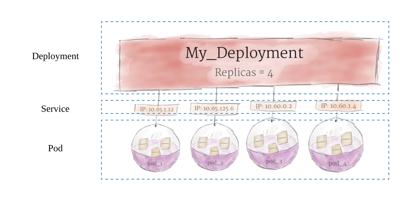 다음 그림은 pod-service-deployment에 대한 모식도를 나타낸 것입니다.