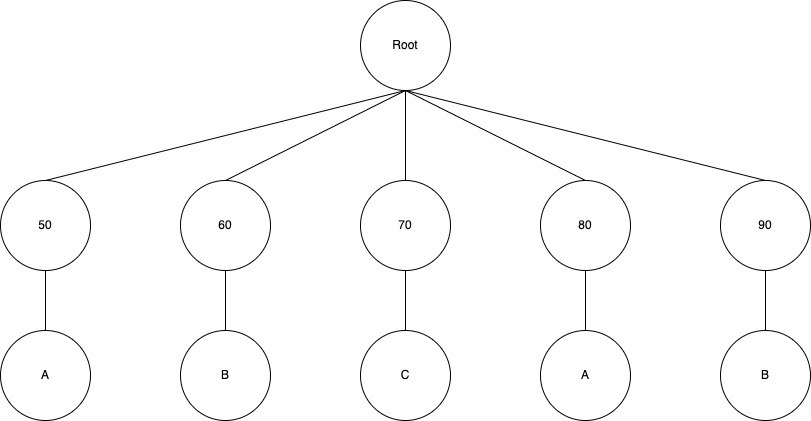 두번째 케이스 query를 분석하게 되면 A,B,C 중 해당 되는 노드만 참조하면 되기 때문에 위 케이스와 비교하였을 때 훨씬 참조하는 노드가 적어진다. 따라서 참조하는 노드가 적어지는 만큼 search 시간도 빨라진다.