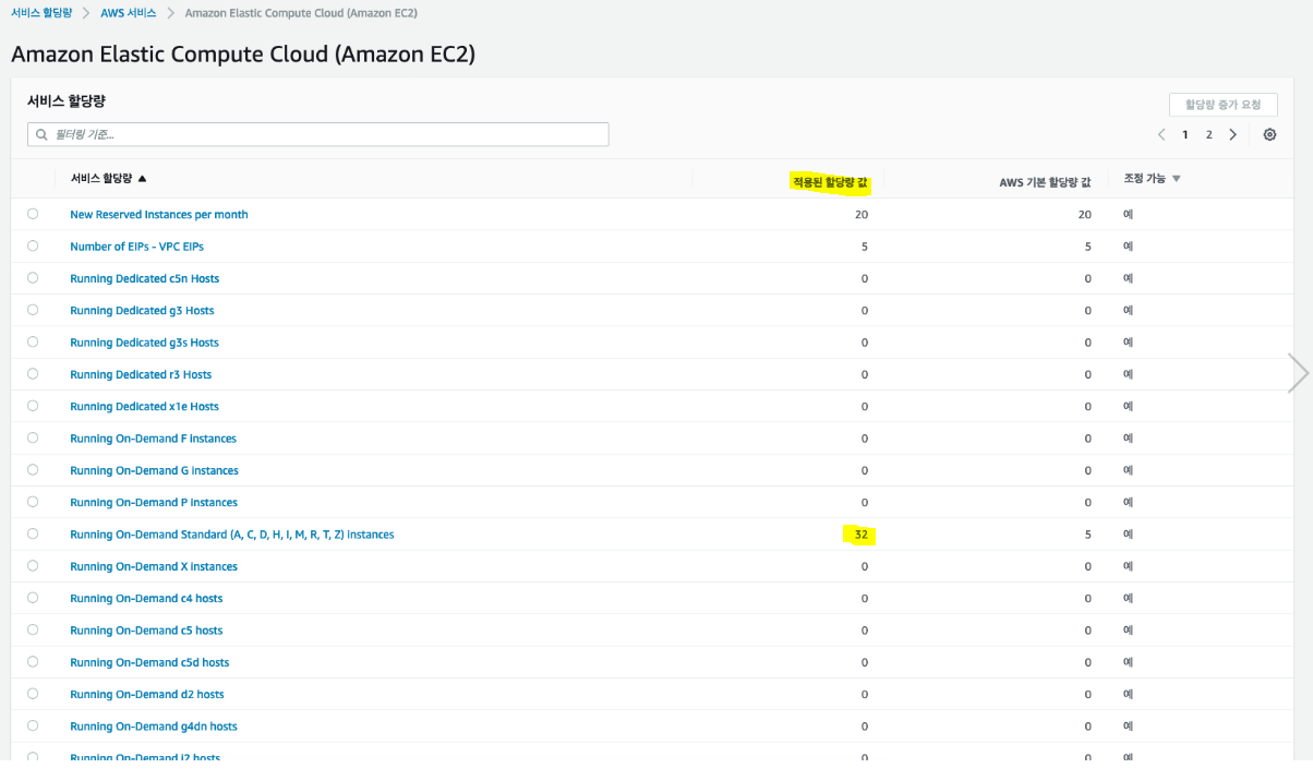 공식 홈페이지 EC2 Default Limit : AWS 전체 사용자가 사용하고 있는 자원에 대에 대해 프로비저닝 된 Limit.