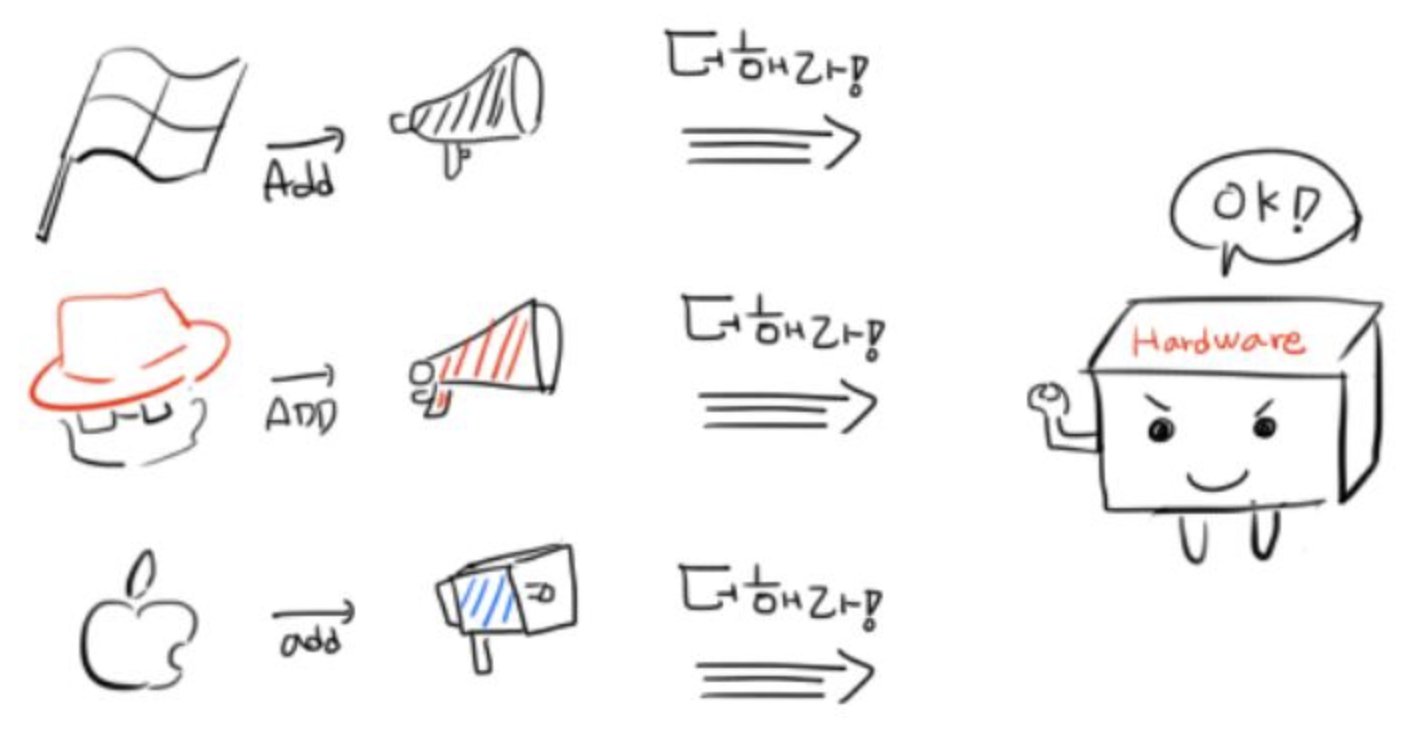 로마에 가면 로마법을 따르는 것 처럼, 각 OS는 고유의 규칙을 가지고 있고 같은 것을 표현하는 방식도 OS마다 틀리다. 각기 다른 표현을 Hypervisor(엄밀히 말하면 DOM0)가 핸들링하여 Hardware가 알아 먹을 수 있는 표현으로 변환 한 다음, Hardware에게 전달한다.
