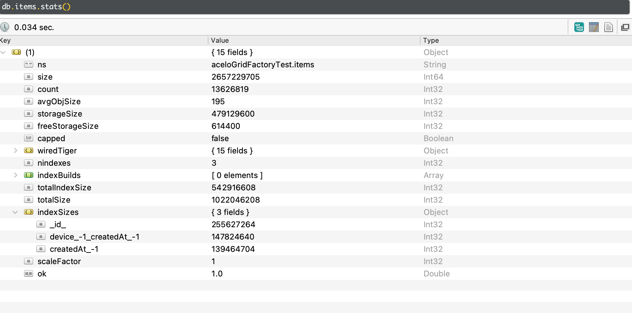 - {createdAt:-1} : 139,464,704 (0.14 GB)