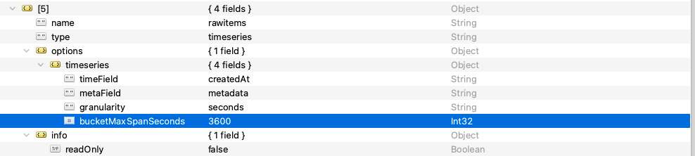 - 변경을 하기 위해서는 기존 collection을 drop 후 새로운 time series collection을 생성해야만한다.